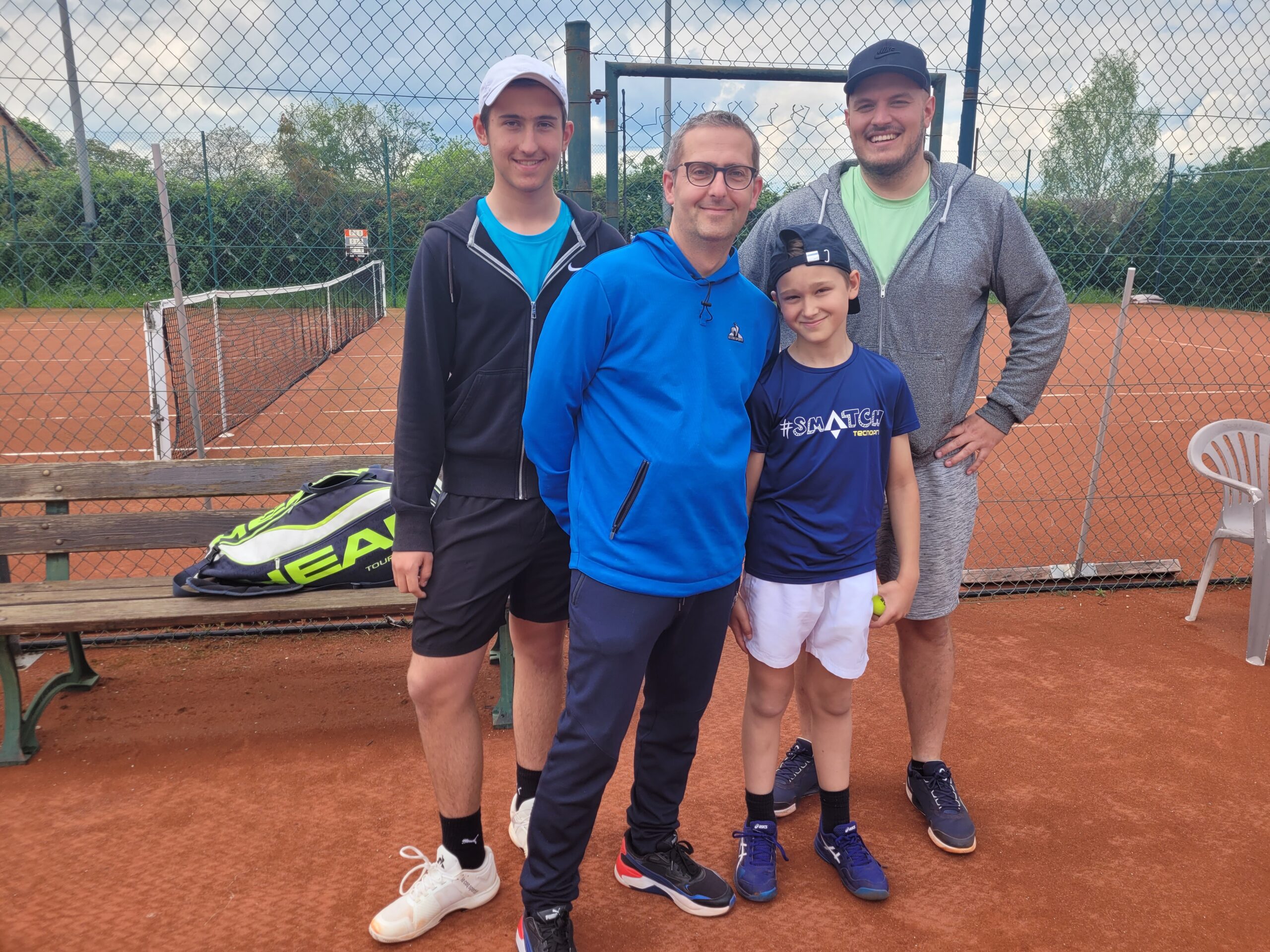 Léo Meyer 30/3 perd 6/0 6/0 contre un 30/1, Maxime Stickelmann 30/3 remporte le 1er set 6/2 contre un 30/1 puis s’incline 6/4 6/3 dans les deux suivants, Sébastien Meyer 30/1 s’impose avec une perf à 30 par 6/0 6/2 et Lucas Meyer 15/5 perd à classement égal par 6/3 6/3. Le double Lucas*Sébastien l’emporte brillamment par 6/4 6/2.